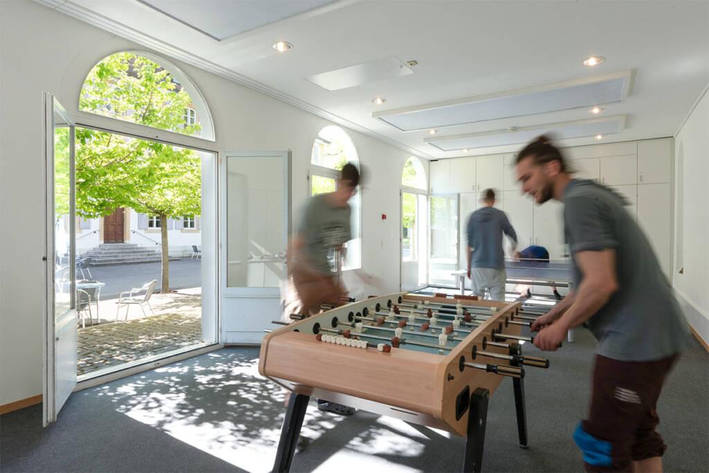 Und im Péristyle stehen ein Tischtennis- und ein Tischfussball-Tisch zur Benutzung bereit.